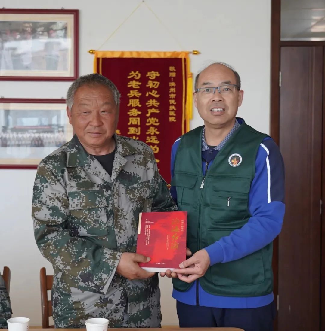 在我院工作人员的带领下,基金会工作人员一一看望了来自邹平市、阳信县的32名参加短期休养的抚恤定补优抚对象,与他们进行深入交流,送上真切关怀和贴心慰问,并为他们带来了老渤海的革命记忆——《渤海红潮》,大家在休养老兵的讲述中共同聆听抗战故事,回顾了那段可歌可泣的红色岁月。