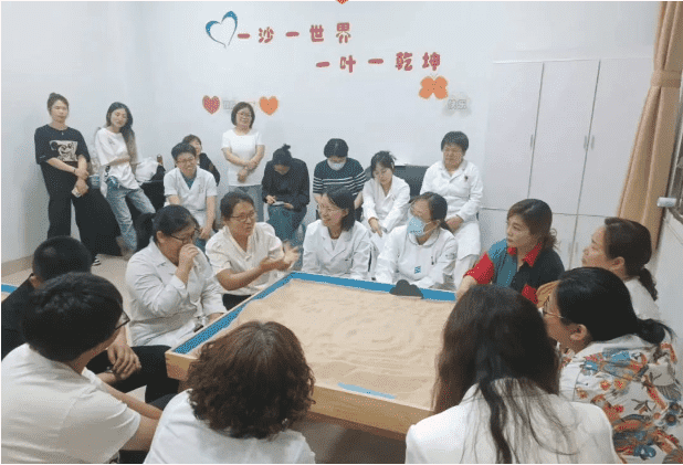 培训中,国家二级心理咨询师、家庭教育指导师付小林为参训学员讲解了沙盘游戏治疗的理论基础和工作原理,并通过实践讲解无沙具沙盘游戏疗法的基本设置与操作,逐步引导大家参与其中。在专业老师的指导下,医护人员有序开展现场实操学习,真实模拟治疗过程,亲身体验了团体无沙具沙盘游戏治疗和任意选择3个代表性沙具沙盘游戏治疗,耐心领会沙盘游戏过程中带给内心深处最真实的感受,在体验中疗愈自我。实操课程结束后,参训人员纷纷表示,通过培训更加充分的认识到了沙盘疗法在心理治疗技术中的重要性,掌握了理论知识和操作要点。