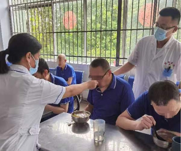 精神障碍患者常因病情原因不愿意进食或者故意不吃饭,为保障患者身体健康,滨州市优抚医院护理团队对这些“吃饭困难户”会“一对一”喂食、看护,以保证进食量。同时,在患者用药,接受治疗过程中,进行全程陪同,精心照护,谨防意外发生。