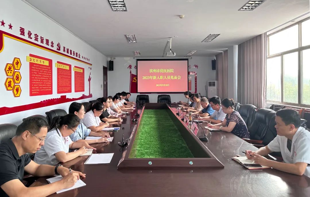 9月18日上午,滨州市优抚医院召开2023年新入职人员见面会,帮助新入职人员尽快适应新环境、进入新角色、胜任新岗位。院班子成员、相关科室负责人参加。