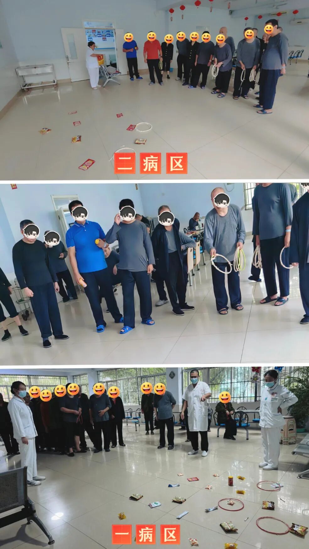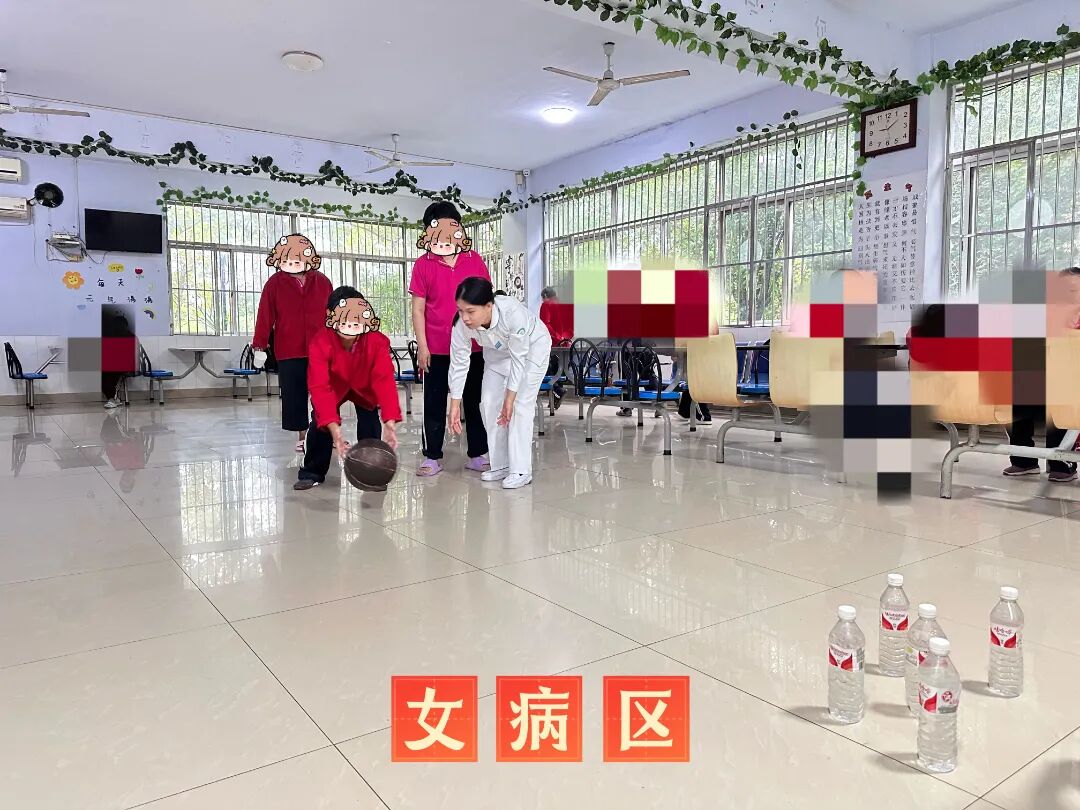 用篮球充当“保龄球”,滚动、撞击、欢呼…… 每一次成功击倒目标瓶,都引来阵阵喝彩。这项活动不仅考验手眼协调能力,更让大家在运动中释放压力、重拾活力,让病房里的中秋多了份动感与朝气。