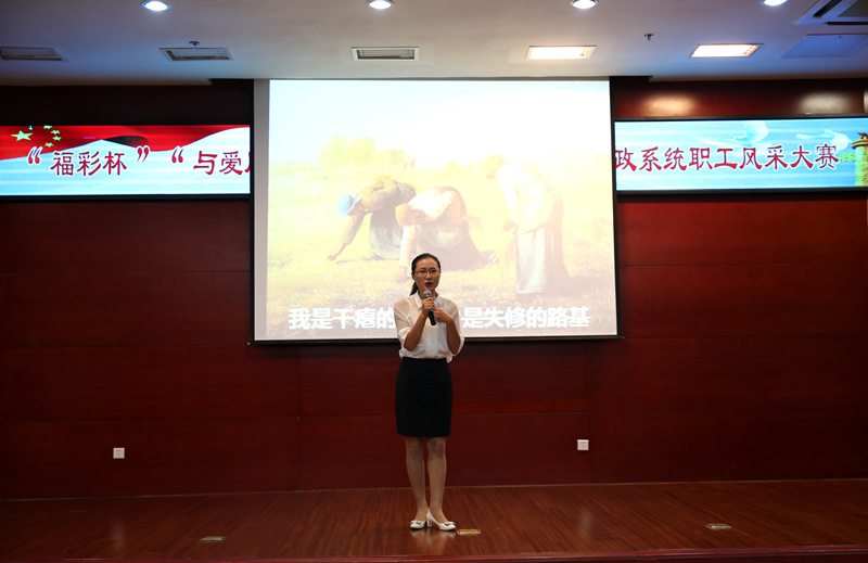 此次风采大赛设置演讲、朗诵和书画、摄影两大类,滨州市市直民政系统16个部门踊跃参与比赛,参赛选手共计36名,参赛作品共计33件,其中演讲朗诵节目17个、书画摄影作品16幅。我院共有5名职工参加比赛,经过精心筹备和认真编排,赵志刚、高国强、苏曼曼、李艳杰以高亢激昂的热情完成了声情并茂的朗诵,张倩倩则以独具匠心的摄影作品弘扬了民政人无悔奉献、大爱无声的职业操守。