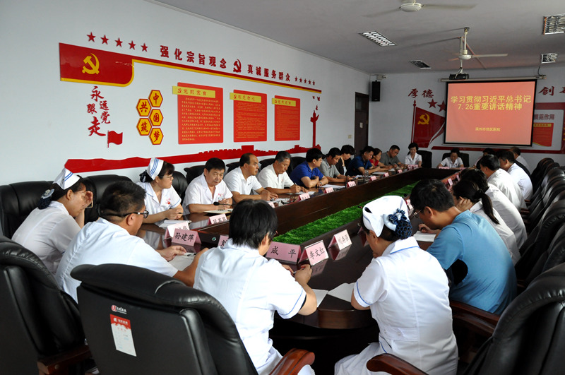 会上,党总支书记周其东同志就如何学习、如何贯彻习近平总书记7·26重要讲话精神做了详细讲解。医院院长韦安祥同志和与会人员共同学习了习近平总书记7·26重要讲话精神全文,并就学习贯彻进行了安排部署。