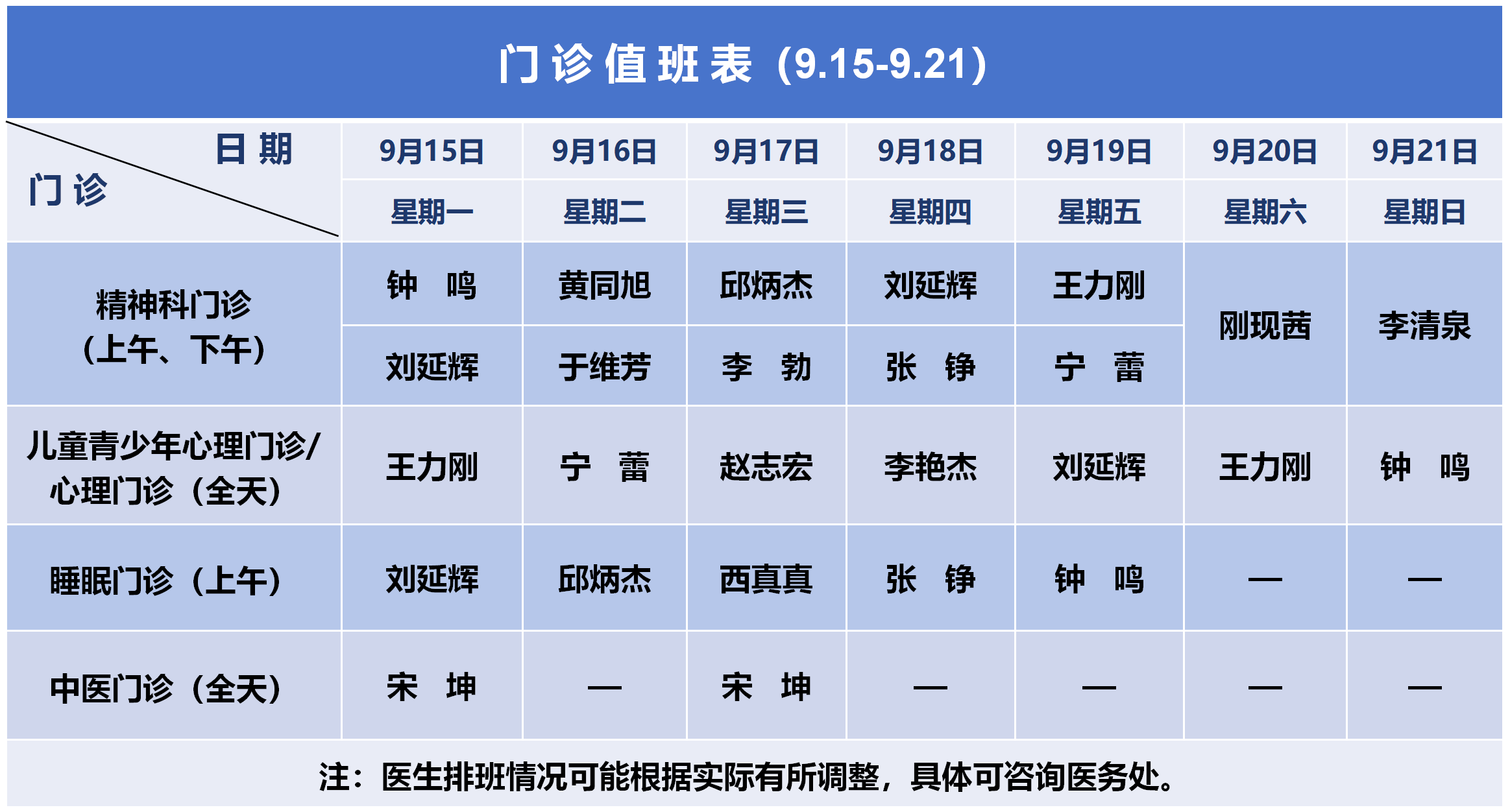 门诊值班表